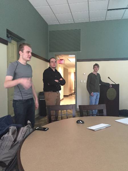 (10-13-15) Alumnus Steven Lachowski '15 and math majors Jacob Henry '16 and Jacob Nowakowski '17 gave the department's first brown-bag lunch talk of the fall semester today. They discussed a series of calculus modules that they designed over the summer of 2015 using the mathematical programming software Mathematica.