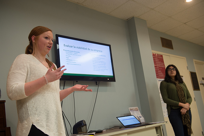 Two other “Business Spanish and its Cultural Context” students – Alexa Huskisson ’18 and Josh Segatto ’20 – will give the March 28 presentation in Spanish. Additionally, five students in Nadeau’s class are assisting this semester with The Volunteer Income Tax Assistance (VITA) grant program, which is an IRS initiative designed to support free tax preparation service for the underserved through various partner organizations.