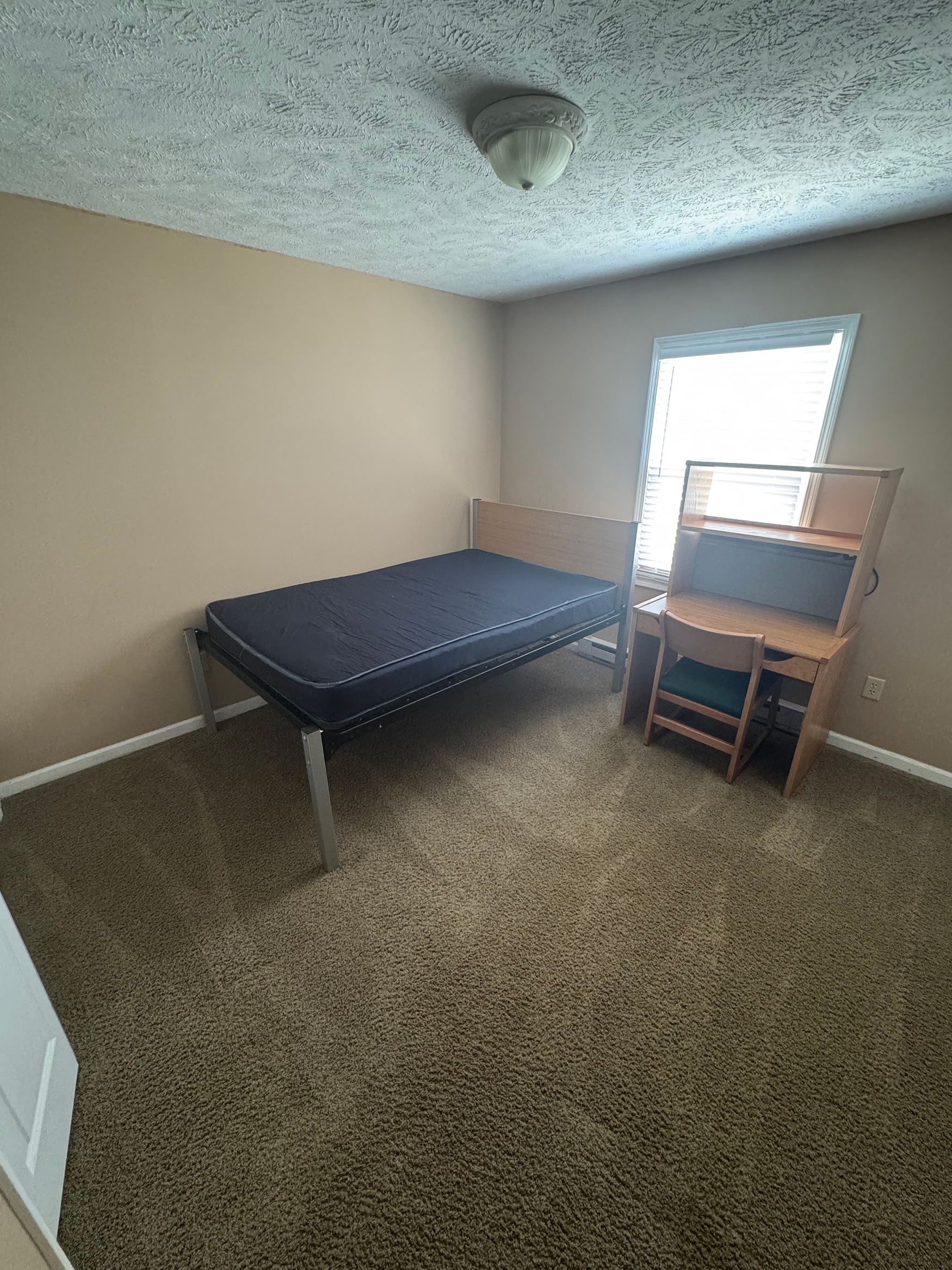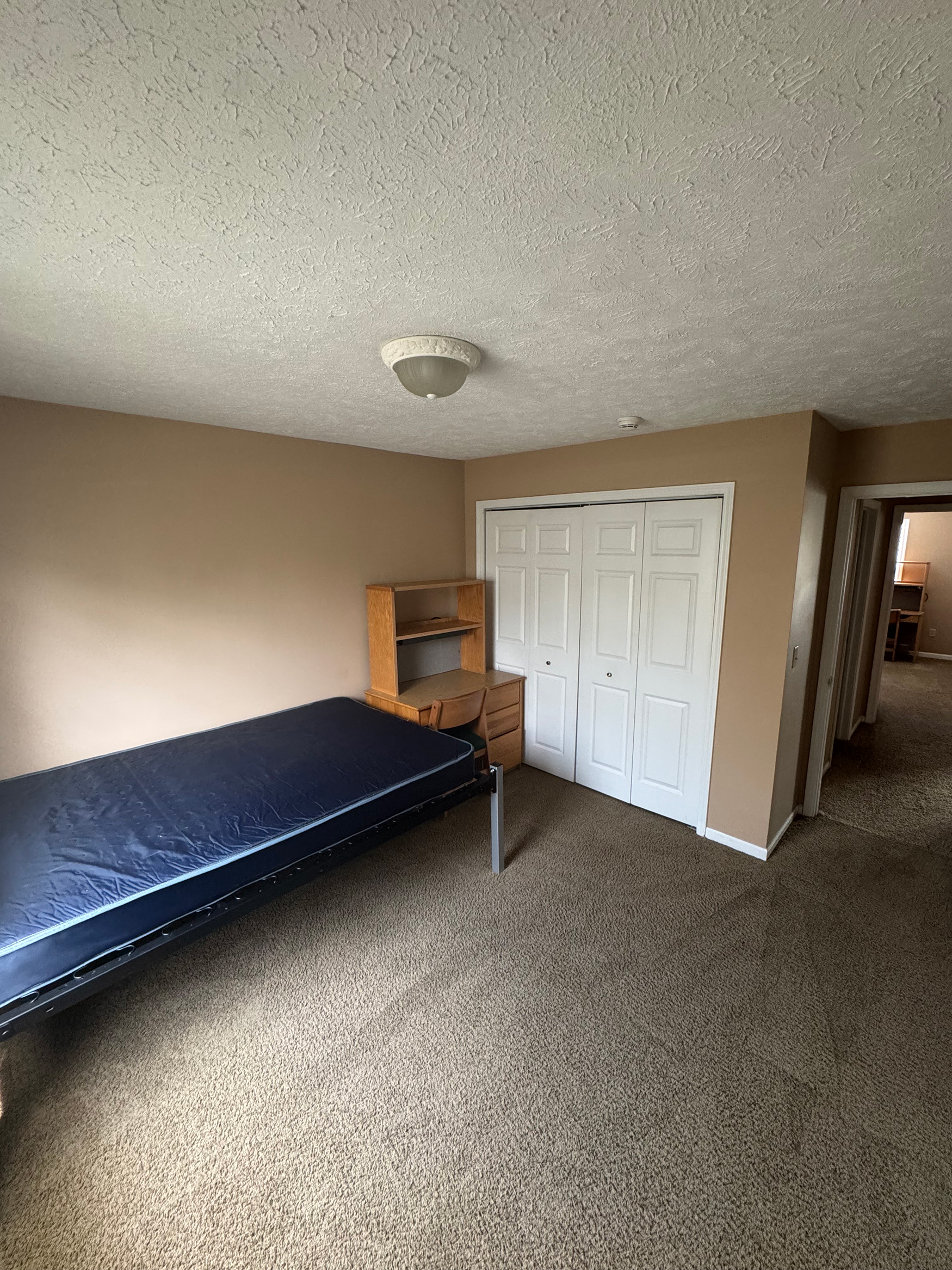 Furniture: Units are unfurnished, but bedrooms include a full-sized bed, dresser, desk, and desk chair.